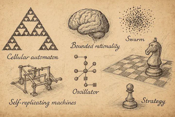 Later, we explored ๐ช๐ผ๐น๐ณ๐ฟ๐ฎ๐บโ๐ ๐ฐ๐ฒ๐น๐น๐๐น๐ฎ๐ฟ ๐ฎ๐๐๐ผ๐บ๐ฎ๐๐ฎ and ๐๐ผ๐ป๐๐ฎ๐โ๐ ๐๐ฎ๐บ๐ฒ ๐ผ๐ณ ๐๐ถ๐ณ๐ฒ. A few simple rules produced behaviors that were complex and often counterintuitive.