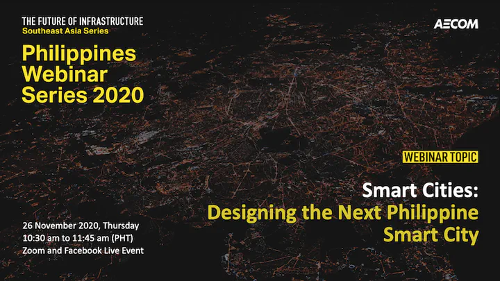 Smart Cities: Designing the Next Philippine Smart City. Technology will change, but the fundamental needs of people will not. City planning will require nimble frameworks that will allow cities to harness data today and tomorrow for quality of life. To be future flexible, adaptability must be baked into the very beginning stages of a masterplan — and at every opportunity along the way. With the rapid expansion of infrastructure projects across the country, what will the future of our cities look like? With new cities, such as New Clark City developing into the next metropolis, what steps must key stakeholders consider in order to develop a smart city suitable for the country? How will Metro Manila adapt and keep up with the growth of the population and the current urban sprawl? Our fourth webinar session will tackle smart city solutions, citing global examples and discuss what smart cities in the Philippines will look like.
