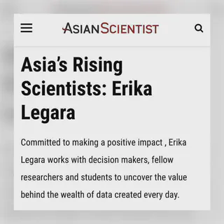 Erika was featured for her interdisciplinary contributions spanning network science, urban mobility modeling, and applied AI — work that bridges computational physics with real-world problems in the Philippine context.