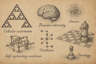 Later, we explored ๐ช๐ผ๐น๐ณ๐ฟ๐ฎ๐บโ๐ ๐ฐ๐ฒ๐น๐น๐๐น๐ฎ๐ฟ ๐ฎ๐๐๐ผ๐บ๐ฎ๐๐ฎ and ๐๐ผ๐ป๐๐ฎ๐โ๐ ๐๐ฎ๐บ๐ฒ ๐ผ๐ณ ๐๐ถ๐ณ๐ฒ. A few simple rules produced behaviors that were complex and often counterintuitive.